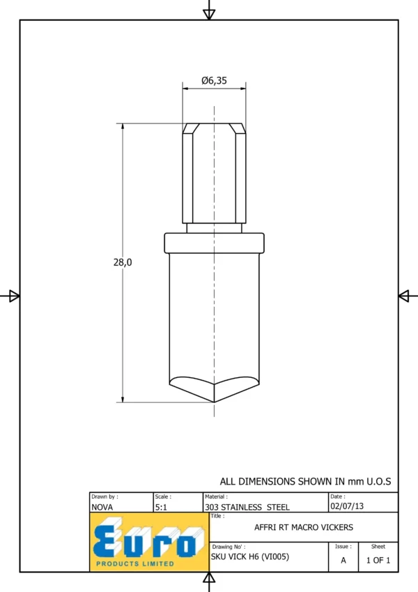 VICKH6 MACRO VICKERS INDENTER DIMENSIONS :