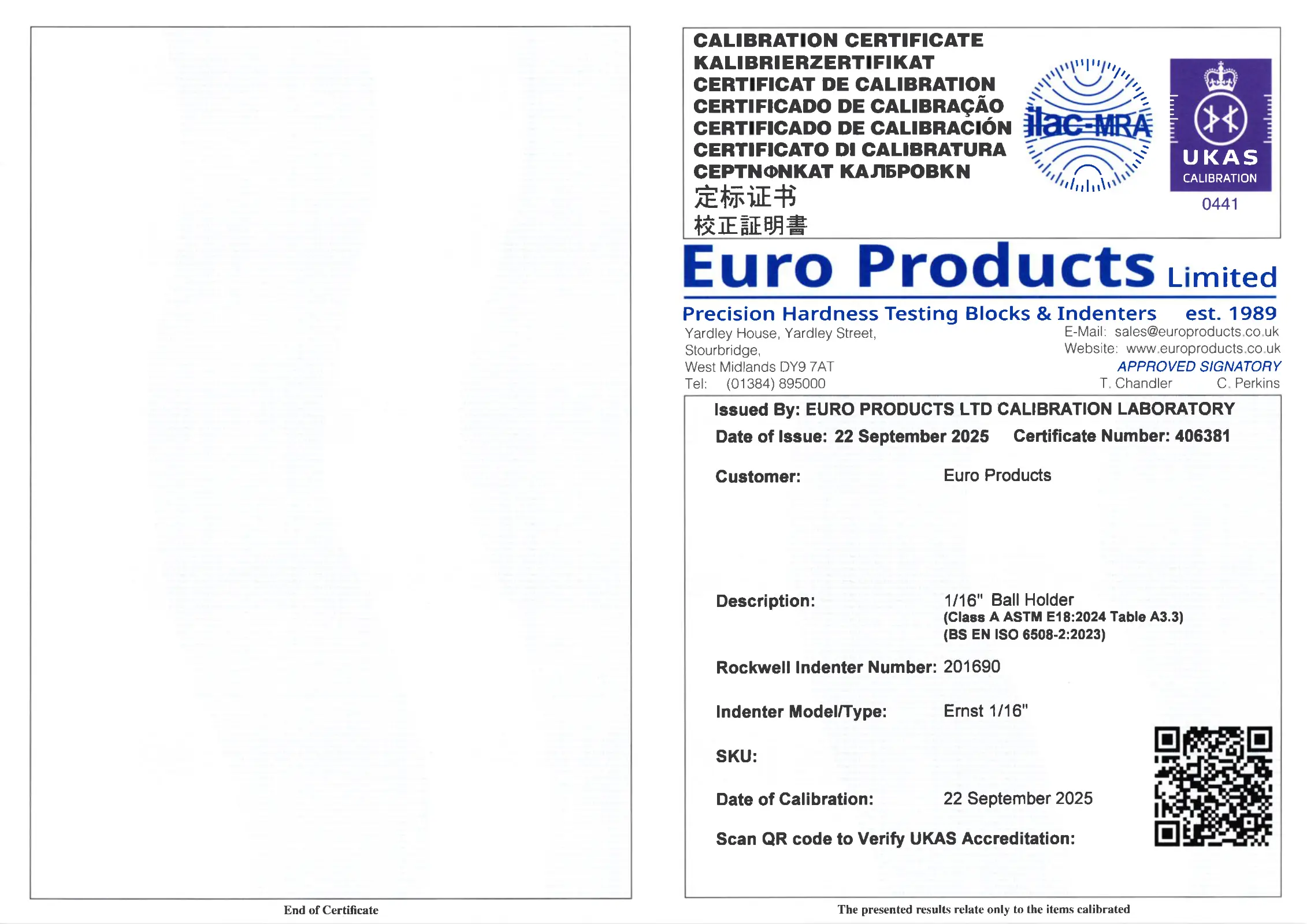 Certified ISO 17025: 2017 - Euro Calibration â„¢ is a Trademark of Euro Products Limited