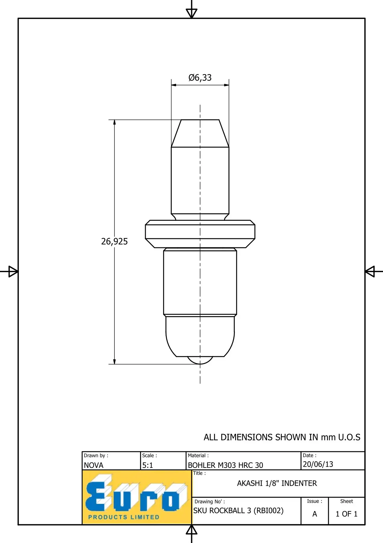 ROCKBALL3 1/8″ BALL INDENTER DIMENSIONS :