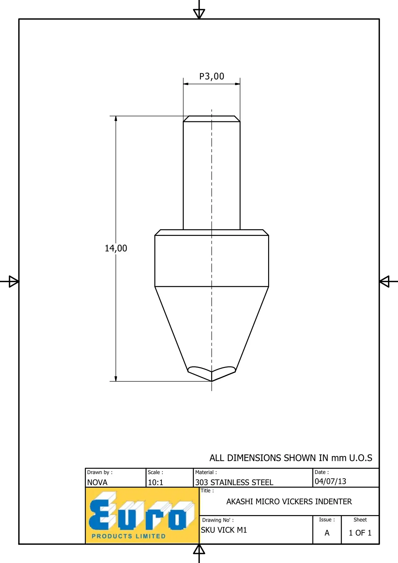VICKM1 MICRO VICKERS INDENTER DIMENSIONS: