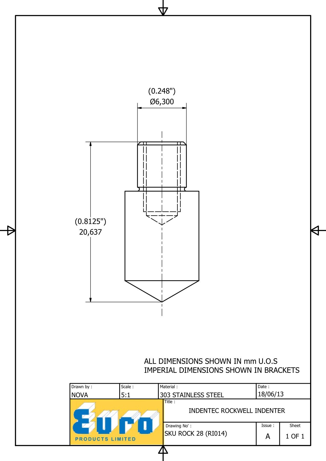 ROCK28 ROCKWELL INDENTER DIMENSIONS :