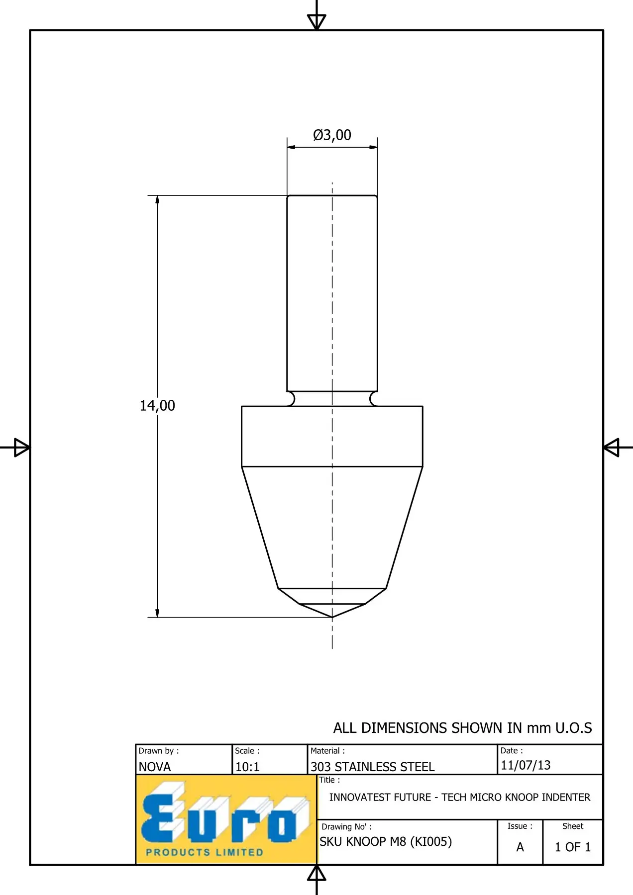 KNOOPM8 MICRO KNOOP INDENTER DIMENSIONS :