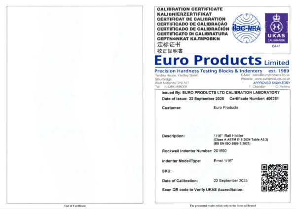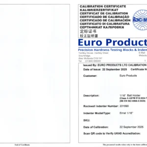 • Calibrated to both EN ISO 6508-2 & ASTM E18.