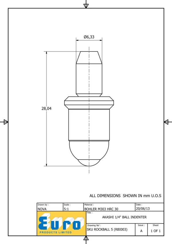 ROCKBALL6 1/4″ BALL INDENTER DIMENSIONS :