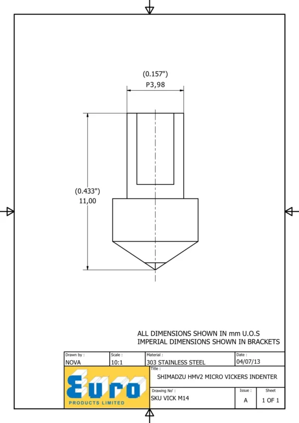 VICKM14 MICRO VICKERS INDENTER DIMENSIONS :