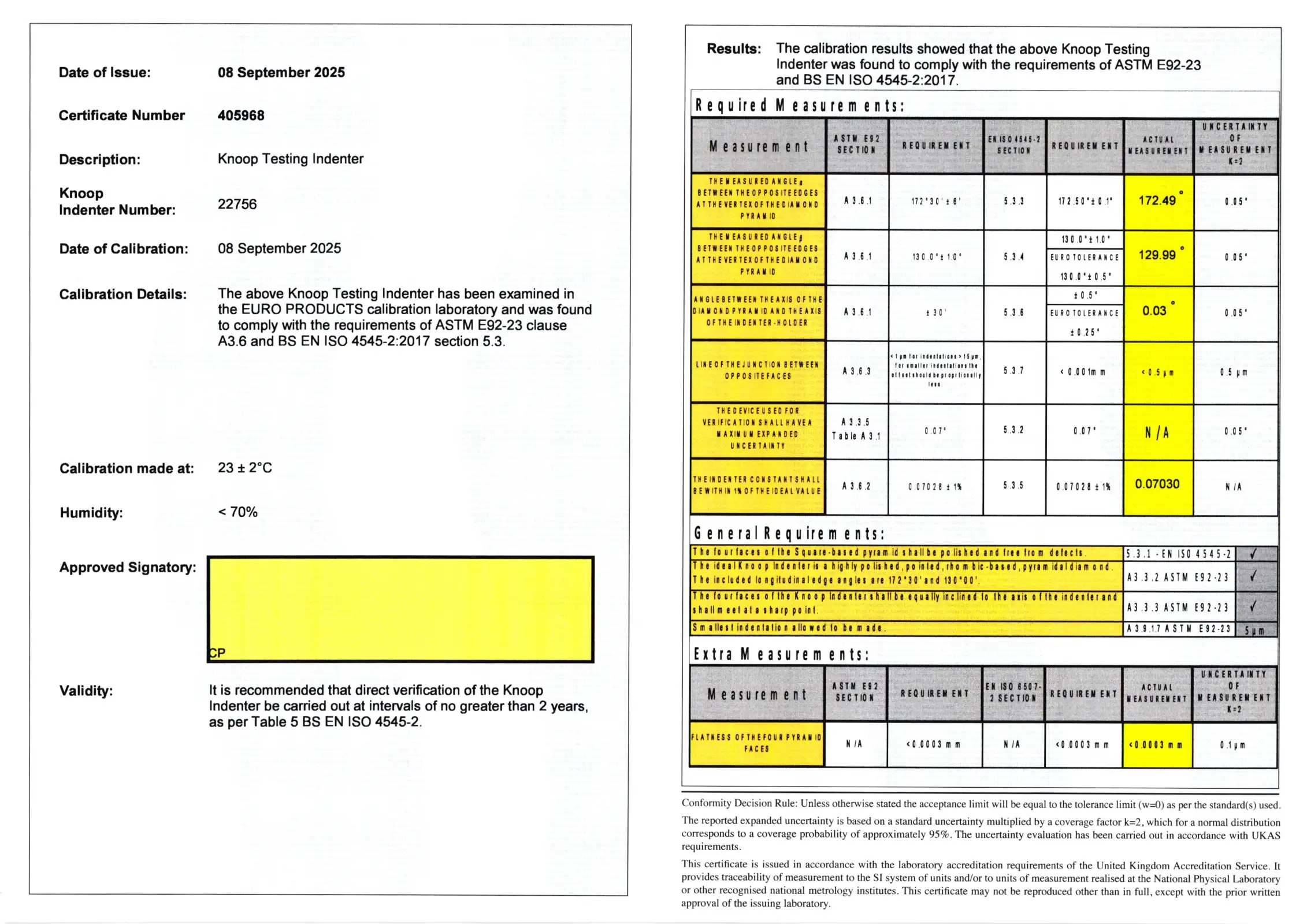 • Calibrated to both EN ISO 4545-2 & ASTM E92.