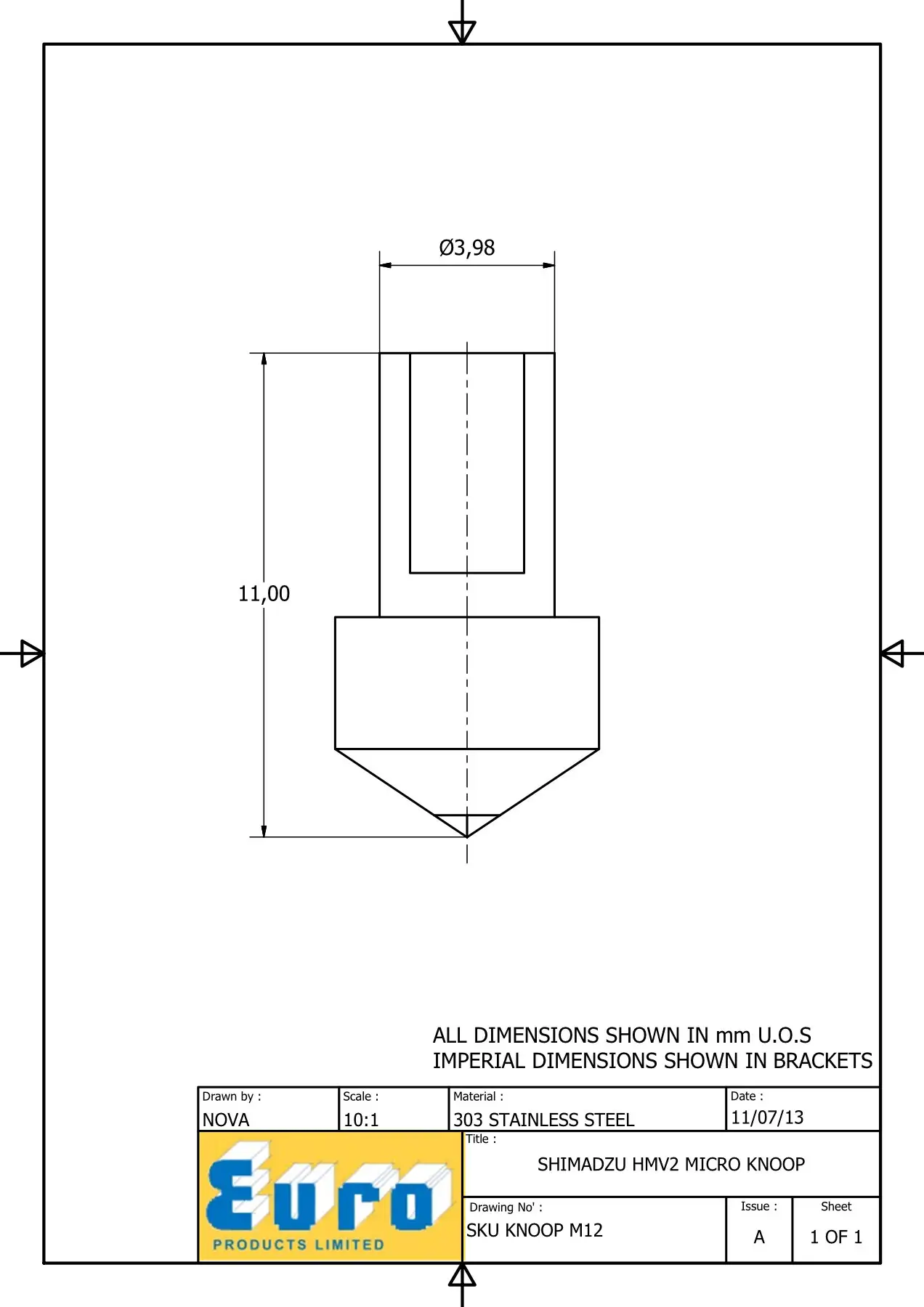KNOOPM12 MICRO KNOOP INDENTER DIMENSIONS :