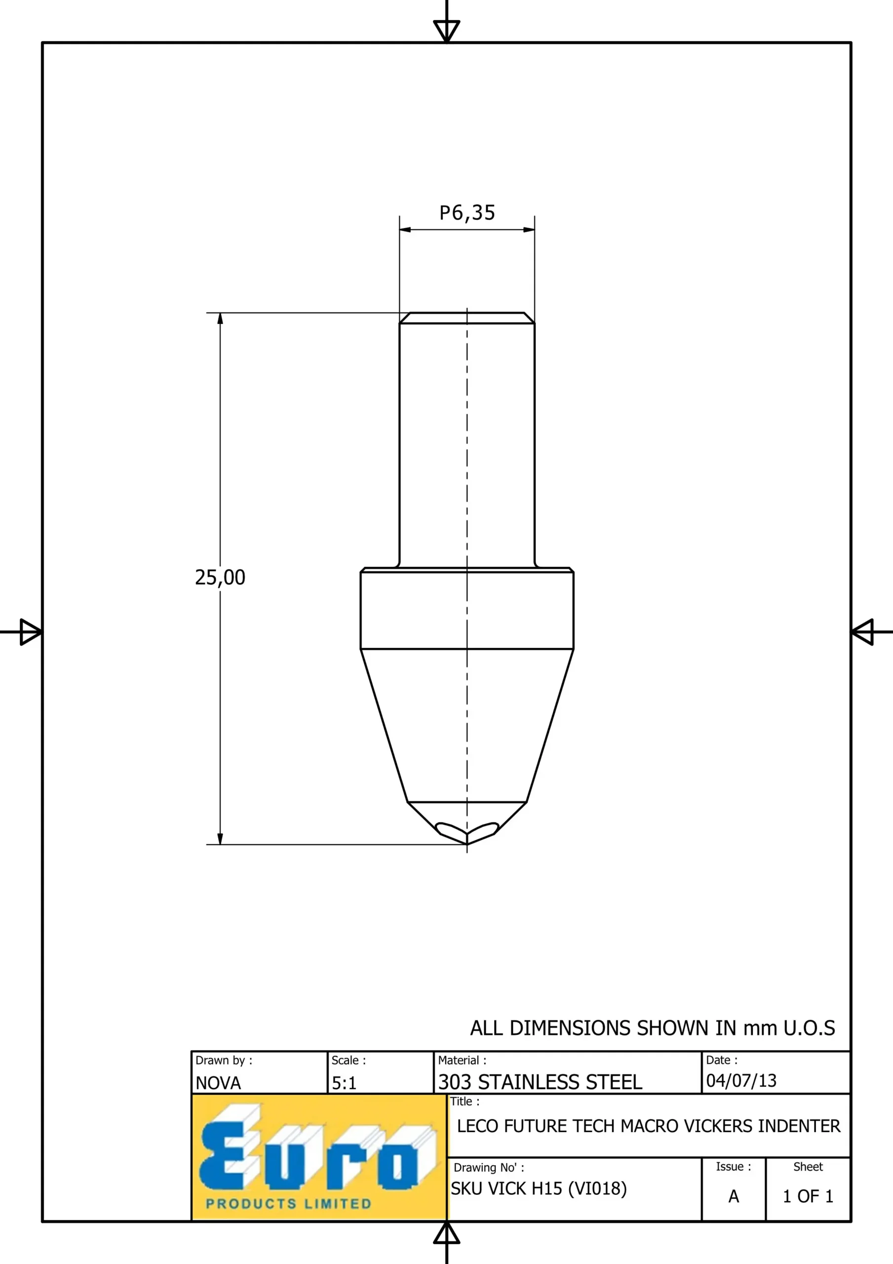 VICKH15 MACRO VICKERS INDENTER DIMENSIONS :