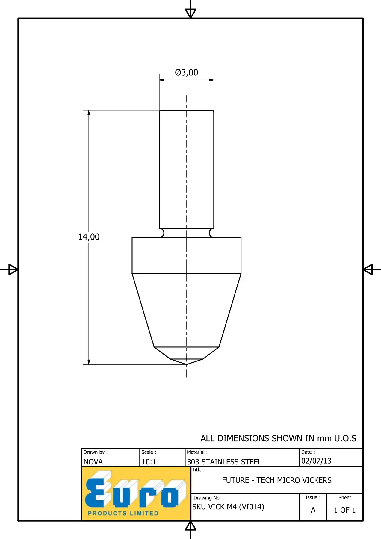 VICKM18 MICRO VICKERS INDENTER DIMENSIONS: