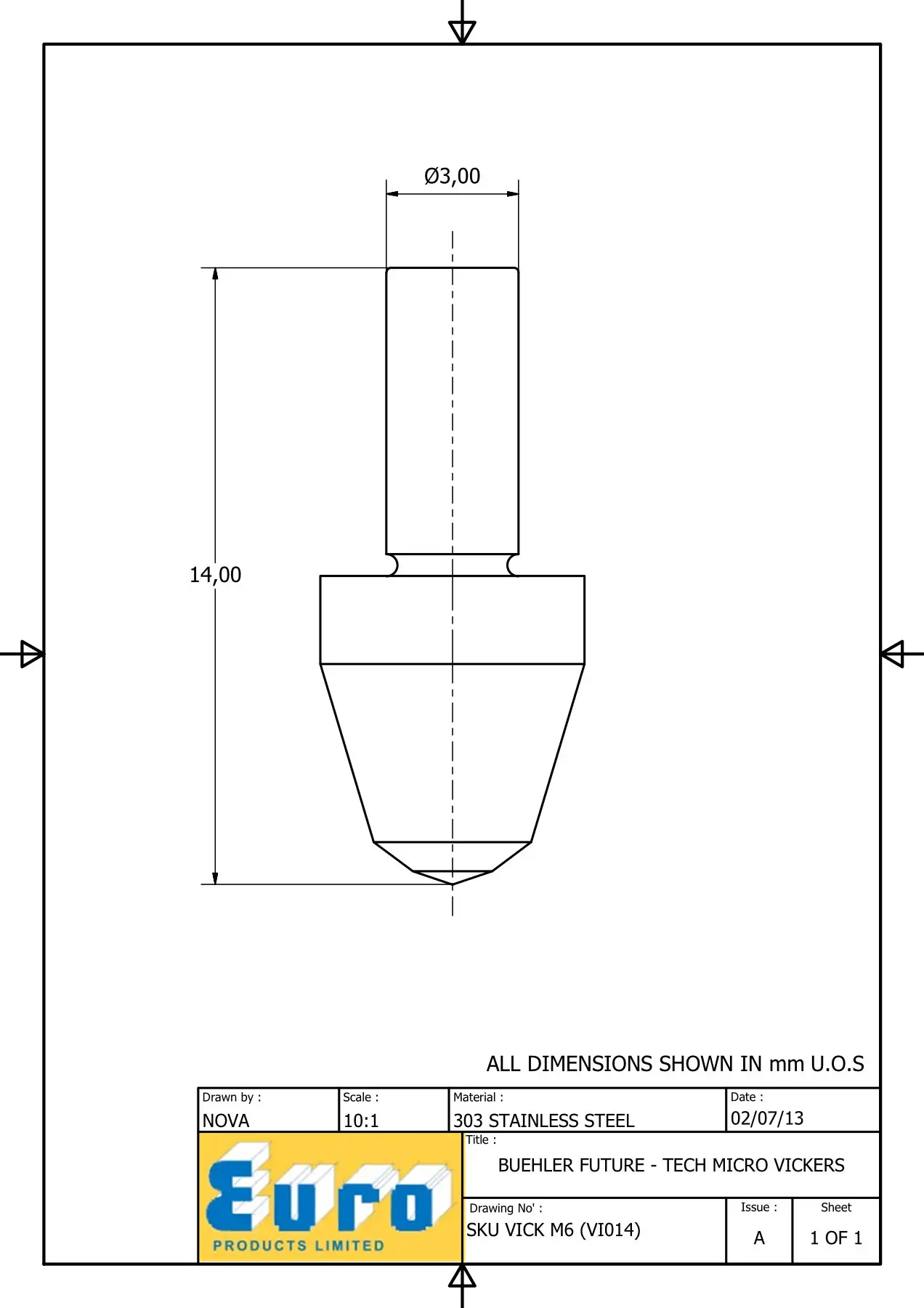 VICKM6 MICRO VICKERS INDENTER DIMENSIONS: