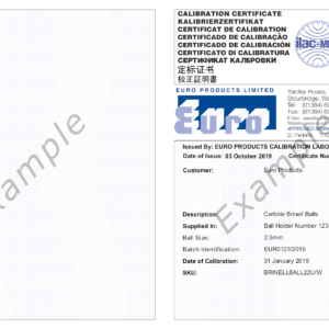 Certified ISO 17025: 2017 - Euro Calibration â„¢ is a Trademark of Euro Products Limited